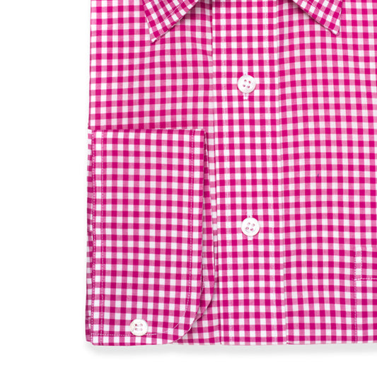 Classic Fit Check Zephyr Button Cuff Shirt in Magenta