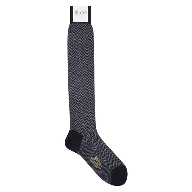 Prince Of Wales Check Cotton & Cashmere Long Socks in Navy and Blue