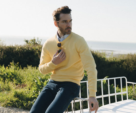 Our jumpers are simple and conceived to work alongside the rest of our collection. Our merino wool jumpers are fine enough to wear with tailoring whilst our cashmere sweaters and button gilets add texture and warmth. Our knitwear fits just right and we recommend sizing up if you prefer things a little looser.