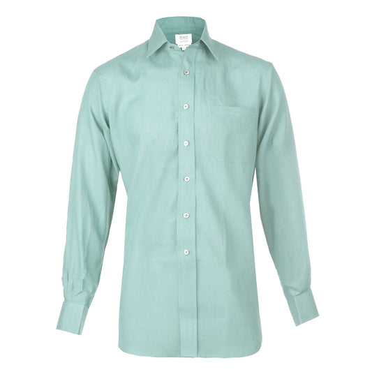 Classic Fit Plain Linen Button Cuff Shirt in Mint