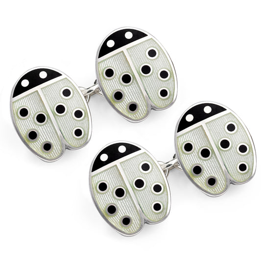 Ladybird Silver Cloisonne Chain Cufflinks in White