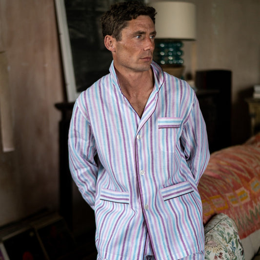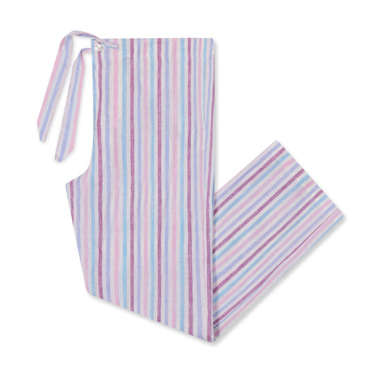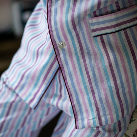 Stripe Linen Tailored Fit Pyjamas in White, Blue and Pink
