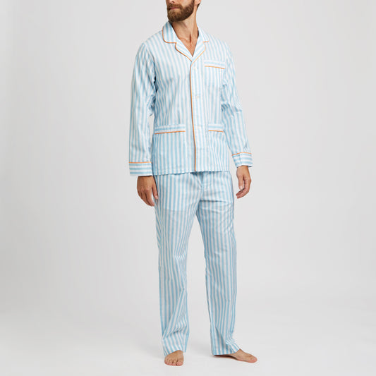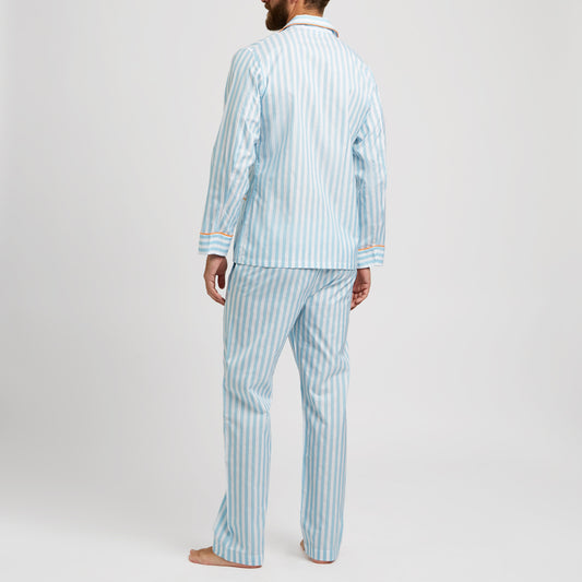 Tailored Fit Striped Batiste Pyjamas in Aqua and Orange